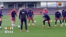 لعبة "المنديل" في تدريبات برشلونة قبل ديربي كتالونيا ضد إسبانيول