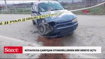 Kütahya’da çarpışan otomobillerden biri dereye uçtu; 3 yaralı