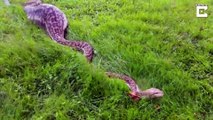 صدق أو لا تصدق.. ثعبان يخرج حياً من معدة ثعبان آخر ابتلعه.. فيديو مرعب