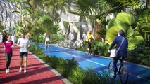 وعرضت "دراجة طائرة" تعمل على الكهرباء وتطير لمسافة 6 كيلو مترات دون صعود أحد عليها، حيث بالإمكان التحكم بها بواسطة الريموت كنترول. وتبلغ سرعتها 70كم/ ساعة.