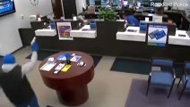 حارس أمن ينقذ مصرف من السرقة .. فيديو