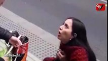 شابة تحرج نفسها أمام المارة وتطلب يد حبيبها .. فيديو