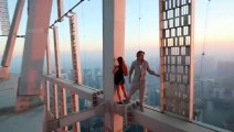 عارضة روسية تتدلى من سطح ناطحة سحاب في دبي لأغرب سبب!