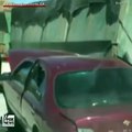 سائق شاحنة يجر سيارة معه دون أن يشعر .. فيديو