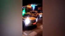 سائق حافلة غاضب يدفع بسيارة بالرغم من إرادة سائقها