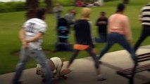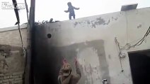 بالفيديو.. والد يشجع ابنه على القفز من سطح مبنى !!