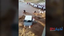 سائق سعودي ينجو بأعجوبة من جرف السيل بالفيديو