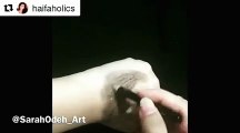 تستخدم مساحيق التجميل في رسم هيفاء وهبي على يدها