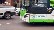Colisão violenta entre carro e ônibus deixa mulher e criança feridas no centro de Cascavel