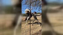 During one powerful rep, Katy’s kickback swung a little too far, landing straight into Raul and hitting him right between the legs.