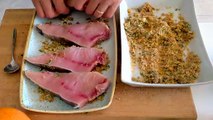 Pesce spada al forno con pistacchi e pompelmo