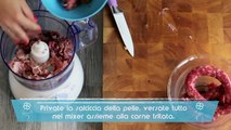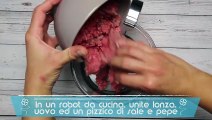 Per il ripieno: 100 g di carne trita di manzo (l'ideale sarebbe avanzo di carne arrosto) 70 g di pasta di salame crudo 20 g di burro 1/2 tazzina di vino bianco 1 pera decana 10 g di amaretti 50 g di Grana Padano grattugiato fresco 20 g di pangrattato 1/4 di spicchio d'aglio Noce moscata Pepe nero Sale