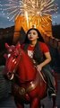 Beautiful girl from Bangladesh is running with a horse