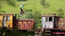 01:46Today's planned stunt is a front flip into the street using a bump to catch the back wheel and send