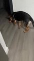 This dog, Callie, a bread lover, stood on his hind legs at the kitchen counter, trying to grab the tortilla on it after dinner.