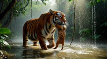 Tiger Saves Cub From Flood