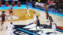 College basketball player crashes into cheerleaders and goes viral