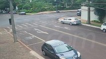 Carro é lançado na calçada após batida no Centro de Cascavel