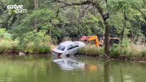 Fuga termina com carro carregado de agrotóxicos em açude no Oeste do Paraná
