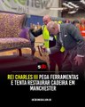 Rei Charles III pega ferramentas e tenta restaurar cadeira em Manchester