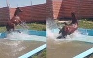 El chapuzón de un caballo en La Plata: andaba suelto y cayó en una pileta de una casa