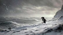 Orangutan using leaves as cover over baby during heavy rainforest rain, emotional slow-motion scene.