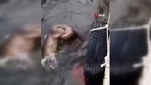 Şırnak'ta selden kurtulan kişi ile köpek yavruları kamerada
