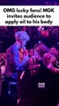 American singer Machine Gun Kelly invites audience to apply oil to his body mid-performance