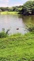 Capivaras são flagradas em 'namoro' no lago em Seropédica