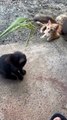 kitten playing with rice