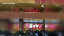 Vatandaşlar sinemada film izler gibi yemek katından kavgayı izledi