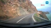 Mersin-Antalya kara yolunda heyelan araç kamerasına yansıdı