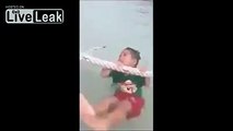Little kid thinks he is drowning until his sister stand him up
