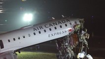 Aftermath of fiery Air Canada plane crash into airport fire truck at LaGuardia