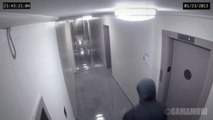 Security Camera Captures A Strange Figure Attacking A Man In A Hallway
