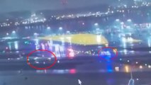 20:47de alta cámaras del aeropuerto grabaron el momento en el que avión avanzaba sobre la pista y el camión