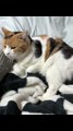 Two Cats Lying Together, Cuddling Happily πΎππΊπΊ
