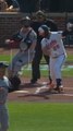 Pete Alonso struck out on a nasty breaking ball from Joe Ryan in his first at bat with the Orioles.