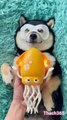 The dog is being massaged and beautified