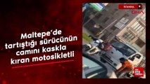 İstanbul Maltepe’de tartıştığı sürücünün camını kaskla kıran motosikletli