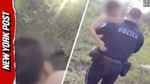 Dramatic moment officer rescues child clinging to a tree branch