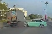 狂飙蛇行猛切道 轿车失手撞罗里