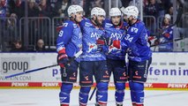 05:24Beim Viertelfinalstand von 3 zu 1 für die Adler Mannheim gegen Bremerhaven.