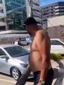 Imagens mostram que o buraco cedeu, formando a cratera, levando a parte dianteira direita do veículo Fiat, de cor vermelha, a cair no asfalto cedido. O impacto quebrou peças do para-choque do automóvel.