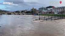 Çanakkale’de Kocabaş Çayı taştı, otopark sular altında kaldı