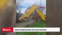 Dereye düşen buzağıyı köylüler kurtardı