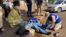 00:32Socorristas do SEAT foram acionados e encaminharam o homem à UPA Veneza, com um corte no lábio.