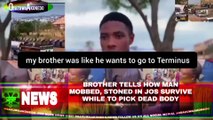 #Bola #Caleb #Gwong #Terminus #UNIJOS #Jos #Mutfwang #Nassarawa #Plateau #Police #Tinubu Young man who identified himself as a 400 level student in the Department of Statistics at the University of Jos, UNIJOS in Plateau state has given accounts how he was told to go and collect the dead body of his sibling on the phone by the attackers who on Wednesday were seen in a viral video that mobbed and stoned his sibling almost to death at an ever busy road near the permanent site of the University of Jos, accordingly, he said the victim who happened to be his younger sibling is also a 300 level student in the Department of Geology from the same University of Jos, saying, his younger sibling only went out around 8 or 9 on Wednesday morning to resolve issue with his bank account at Terminus area of the Jos city when he came under attack after the driver of the commercial tricycle or Keke he entered abandoned him half way and asked him to find way out for his own escape as the rampaging mobs took over the road. #OsazuwaAkonedo