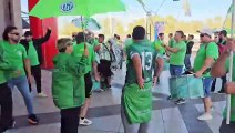 Manifestación esta mañana en el ingreso al Bahía Blanca Plaza Shopping