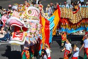 Watch the celebration of Chinese lion and dragon dancing in the lead up to the lighting of 100,000 fire crackers to wake up Dai Gum Loong.
